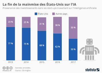 La France fait donc mieux que l’Allemagne, l’Inde et la Suède, mais reste toutefois très loin des États-Unis, pays par excellence de l’intelligence artificielle. Près de 1 400 start-ups dans l’IA y ont en effet été recensées. Même la Chine, deuxième de ce classement, ne peut rivaliser avec ses 383 start-ups.