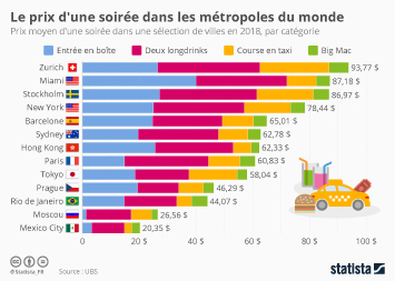 Ce graphique indique le coût de location médian d'un studio et d'un deux-pièces au T1 2018 dans une sélection de villes françaises.